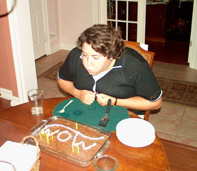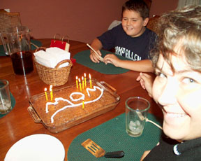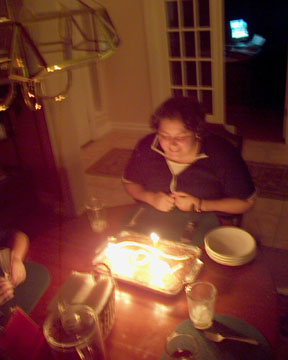 And what year can be complete without Kirsten turning yet another year older. At left is Kirsten eagerly awaiting her cake. And she wants to eat it too!