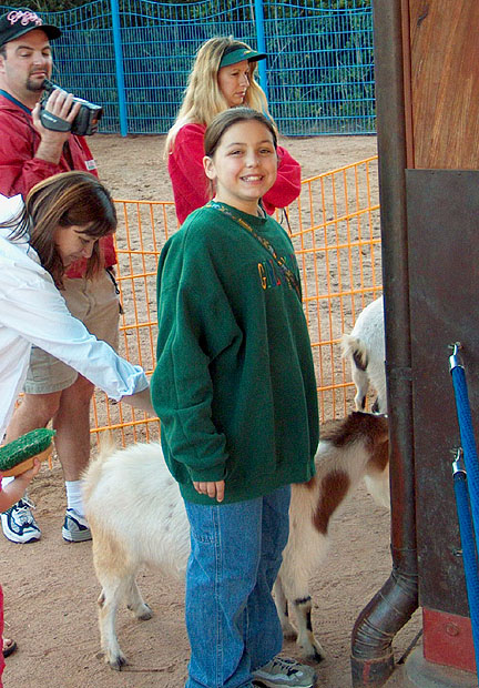At left, Kirsten is walking toward the Tree of Life. Right, Christina has found a new firend. |