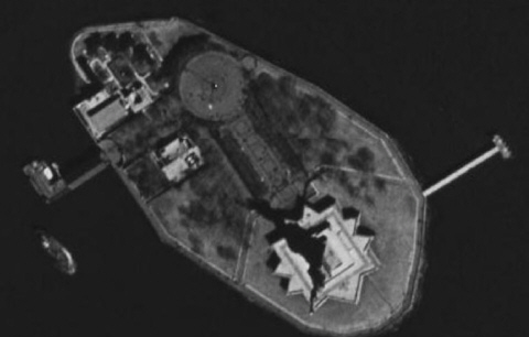 These next several pages are full of the traditional sights most people want to see while on a rush tour of Manhattan. Of course, no trip to New York is complete without a visit to the Statue of Liberty. Because of security reasons, the Statue was not open which depressed the kids, somewhat. So, they bargained with a New York street vendor and bought me a ticket on the only tour available, a rocket-on-your-back tour. Of course, for me, it was a bit hairy but I did get a good shot, below. |