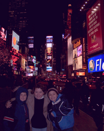 Above: I always see things on T.V. and announce to the kids "I've been there." Well, no more. Watching Dick Clark on Times Square, both kids were now able to tell me: "I've been there."